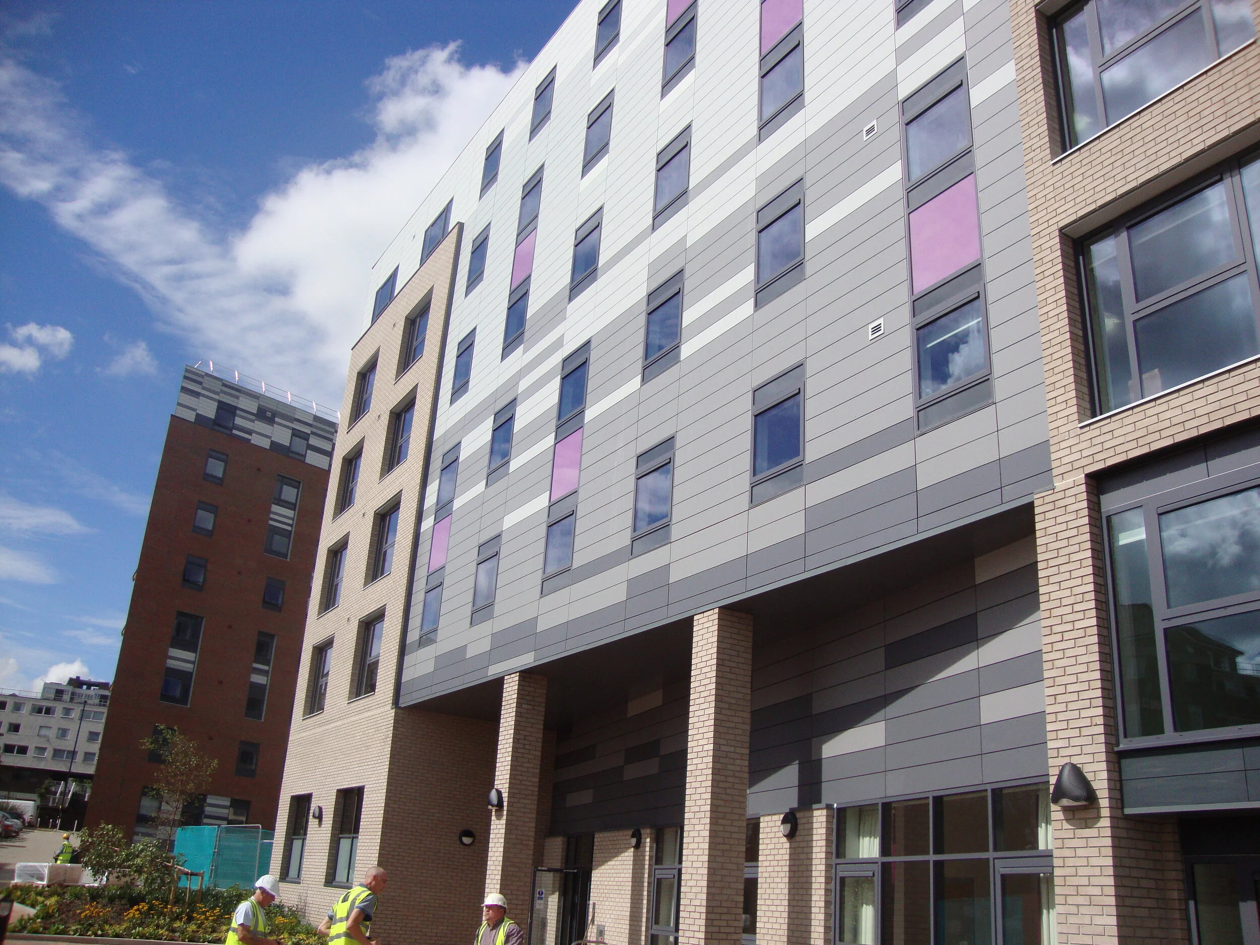 This mixed-use student accommodation development will provide up to 2000 student bed spaces across six self-contained buildings. Accommodation is provided in cluster apartments, with retail units and a range of other facilities incorporated at ground level. All buildings are to achieve BREEAM ‘Very Good’ rating as a minimum, and areas of sedum green roof will be incorporated to reduce water run-off and encourage biodiversity.